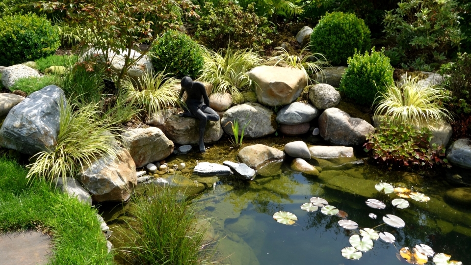 The site in part had been an old farm yard, requiring a massive removal of debris. Once cleared, a garden has been created in which her clients can relax and meander through various garden zones, connected by pathways and terraces, each area with its own theme. Overlooked from the main house is a parterre rose garden with mass planting of the beautiful Rosa Bocobel and Rosa Queen of Sweden, surrounded with box hedging and infilled with lavender and salvias. A central contemporary fountain links paths from the house to the cottage and through to an avenue of Pyrus Chanticleer trees, leading the eye to a distant bench and the countryside beyond.